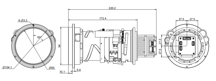 Φ110 (אוגן) × 221 מ"מ, φ115 (מקסימום מימד כללי) |